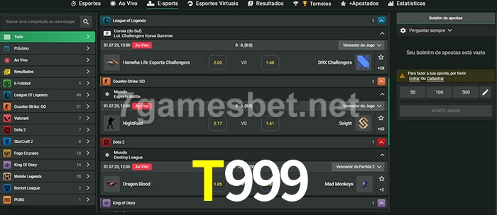 A aposta T999 oferece aos jogadores a experiência mais conveniente de apostas em eSports!